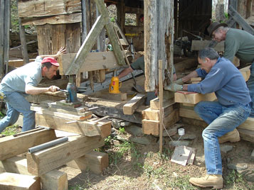 Five-Day Barn Workshop (May, 2006) with Bob Hedges, Conrad Fingado, Todd Scheff, and Eric Braymer, at the 1770 Dutch Barn on the Palatine Farmstead continued the work done in 2005. The goals of these two workshops were to focus on several areas regarding this important project.